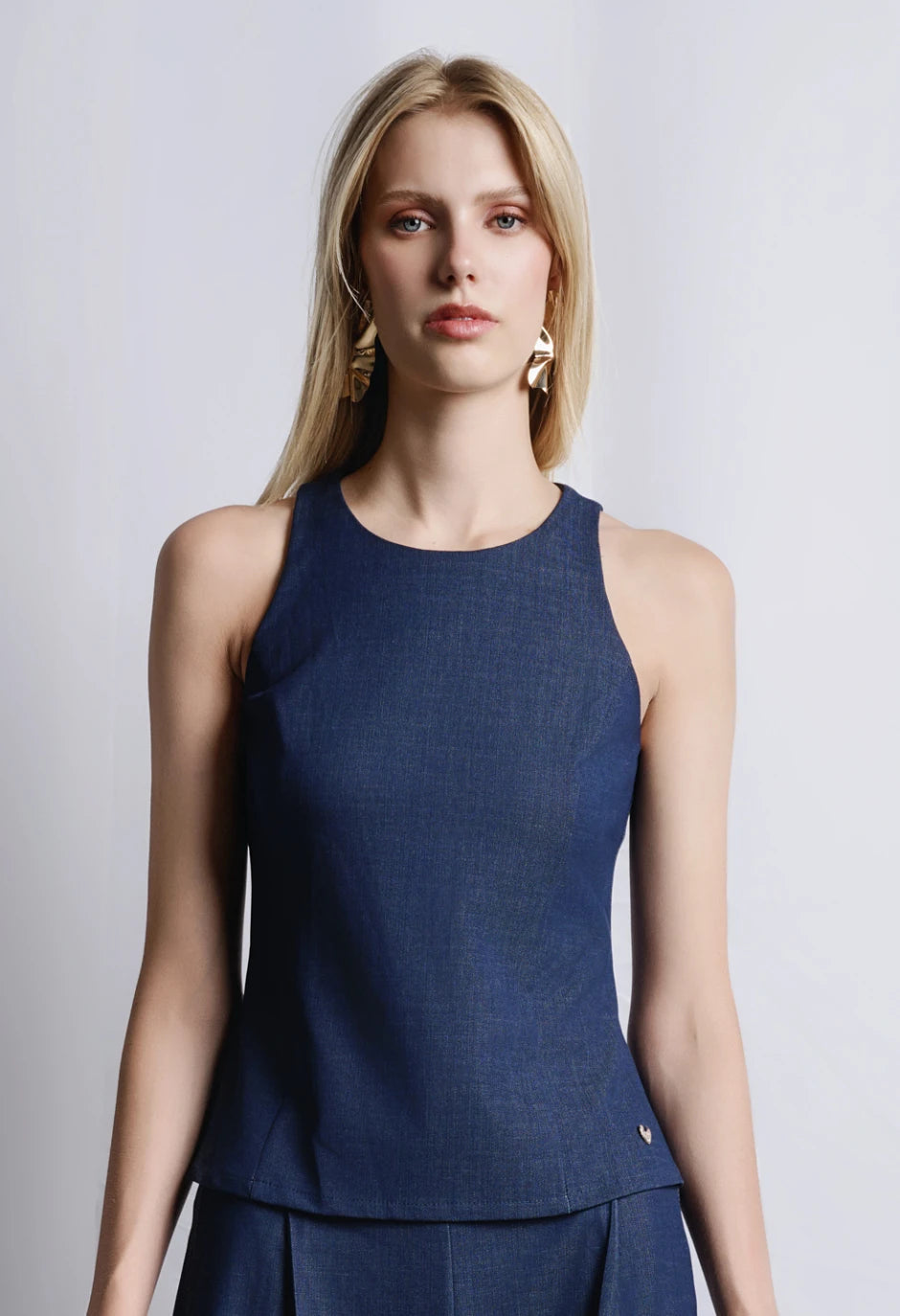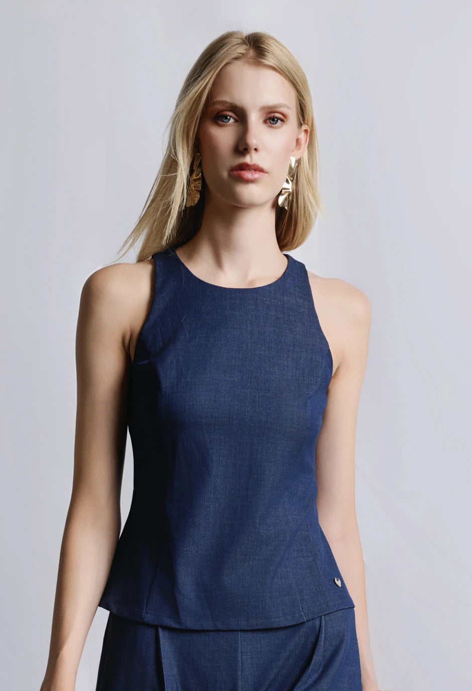 Αναδείξτε με στυλ τη γκαρνταρόμπα σας με αυτό το κομψό αμάνικο τοπ DESIREE — ένα διαχρονικό και ευέλικτο κομμάτι που συνδυάζει άνεση και μοντέρνα αισθητική. Ιδανικό για layering ή για καθημερινές εμφανίσεις σε ζεστές ημέρες.