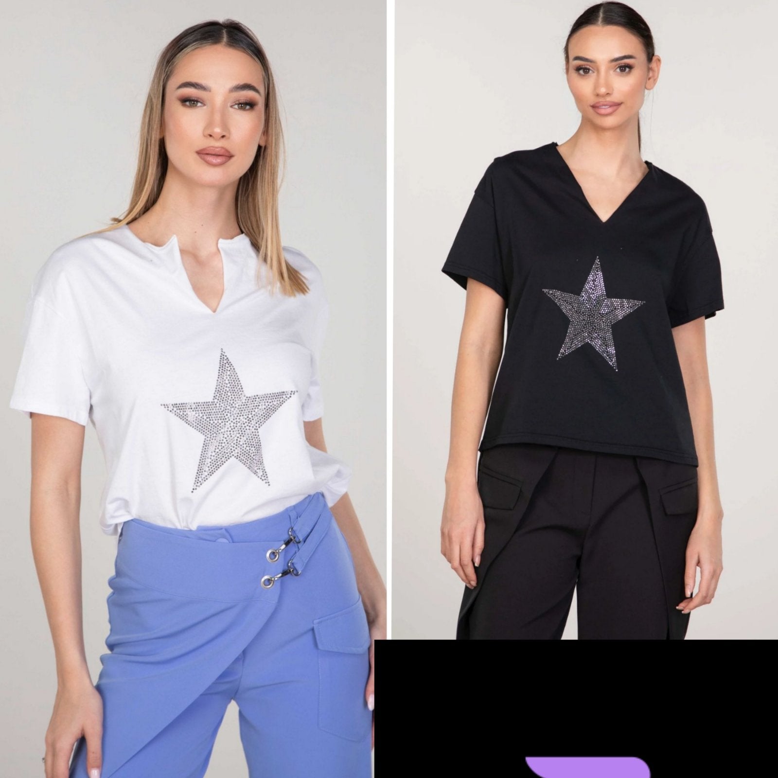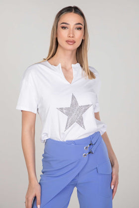 Μπλούζα κοντομάνικη με v λαιμόκοψη και στρας.