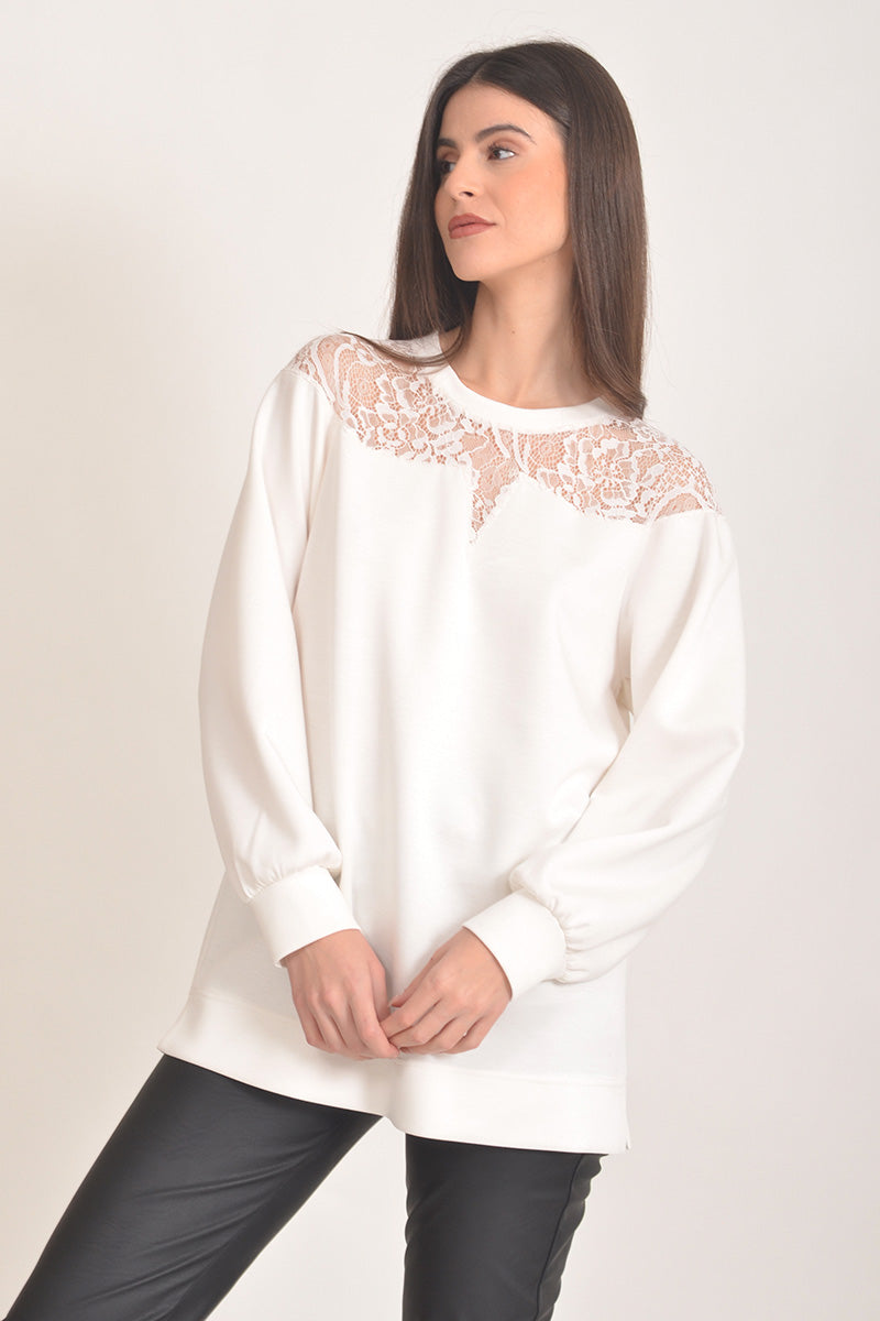Μπλούζα scuba modal oversized με δαντέλα στο πάνω μέρος και πίσω στην πλάτη.