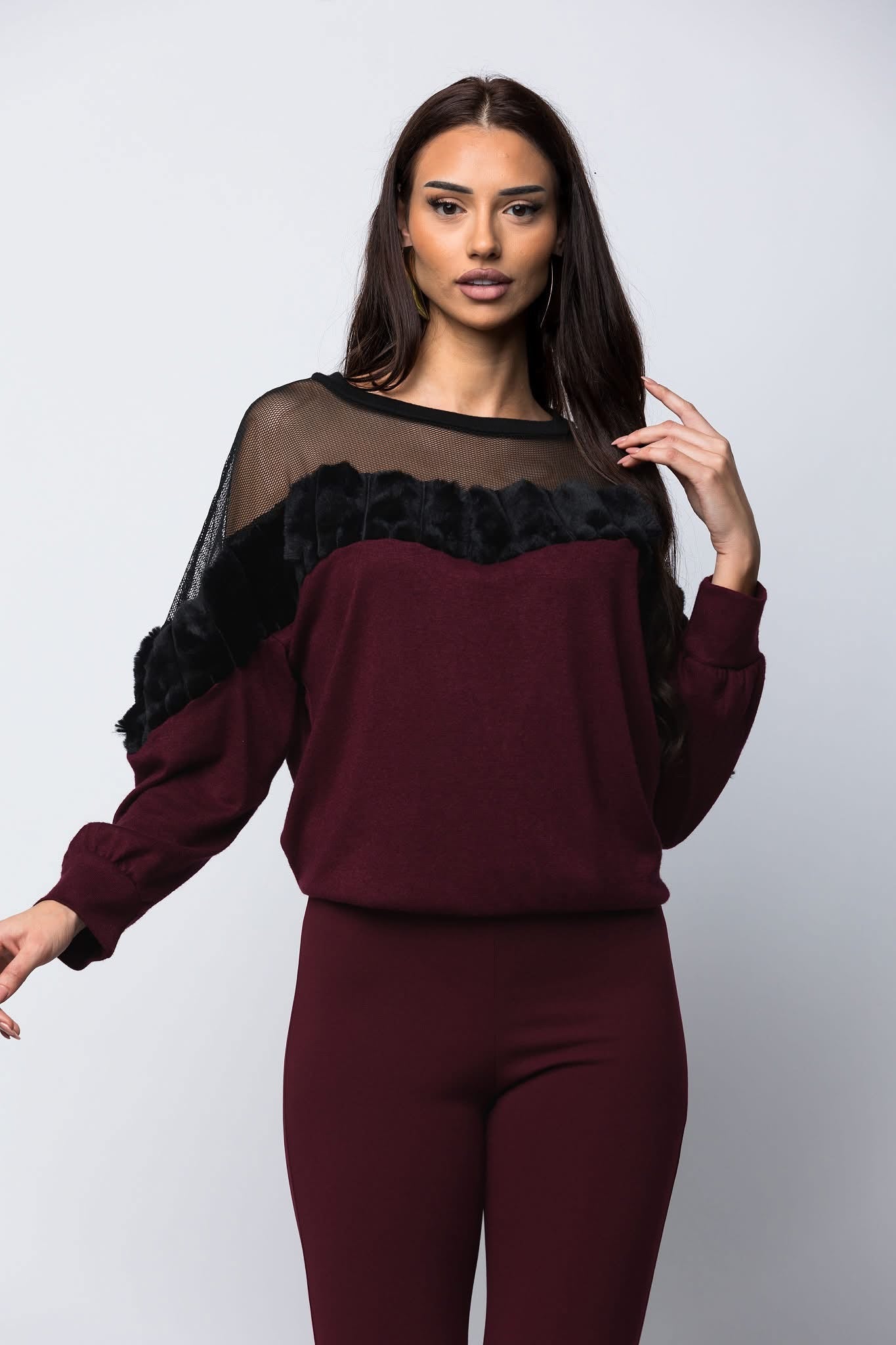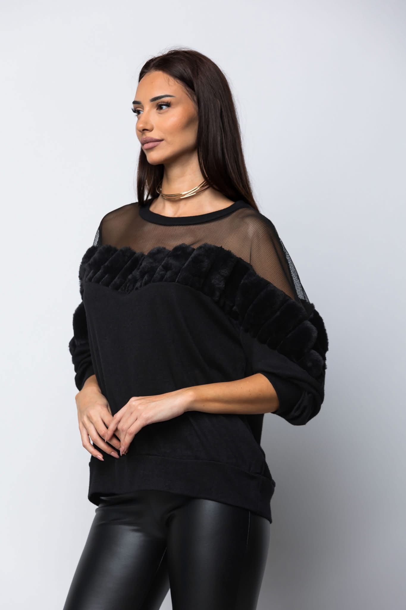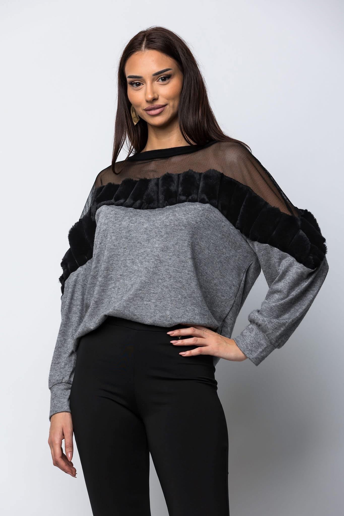 Μπλούζα πλεκτή βισκόζι με δίχτυ κ γούνα.