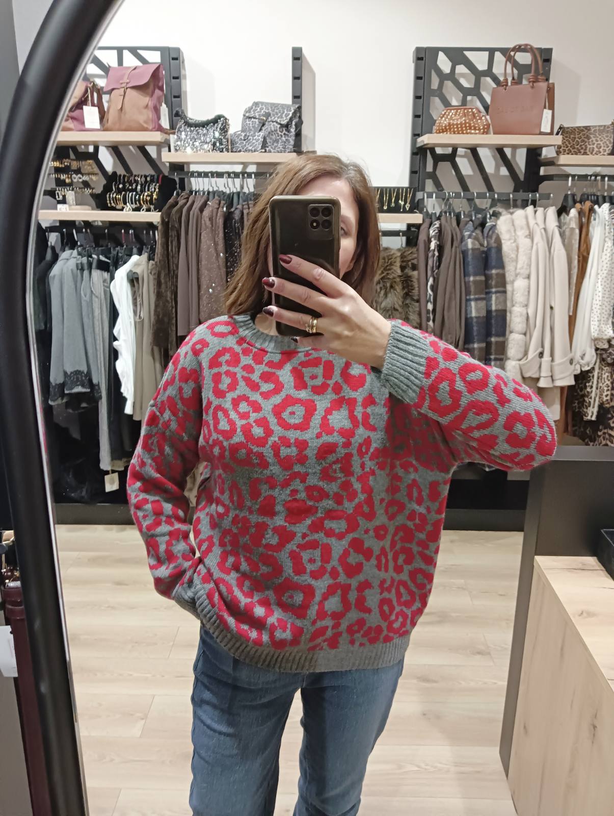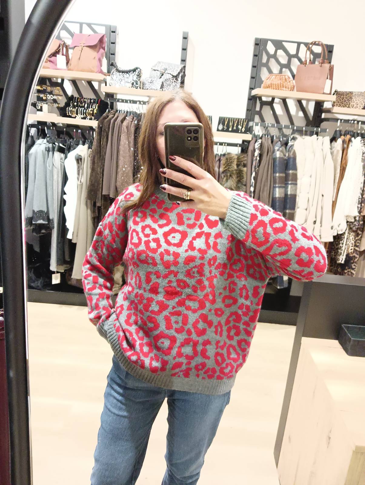 Μπλούζα πλεκτή oversize animal print με κλειστό λαιμό.