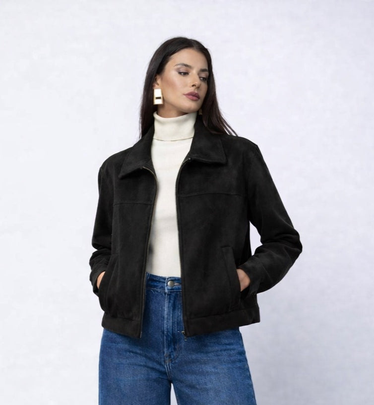 Μπουφάν τύπου σουέτ σε μαύρη απόχρωση, ελαφρύ αφοδράριστο.