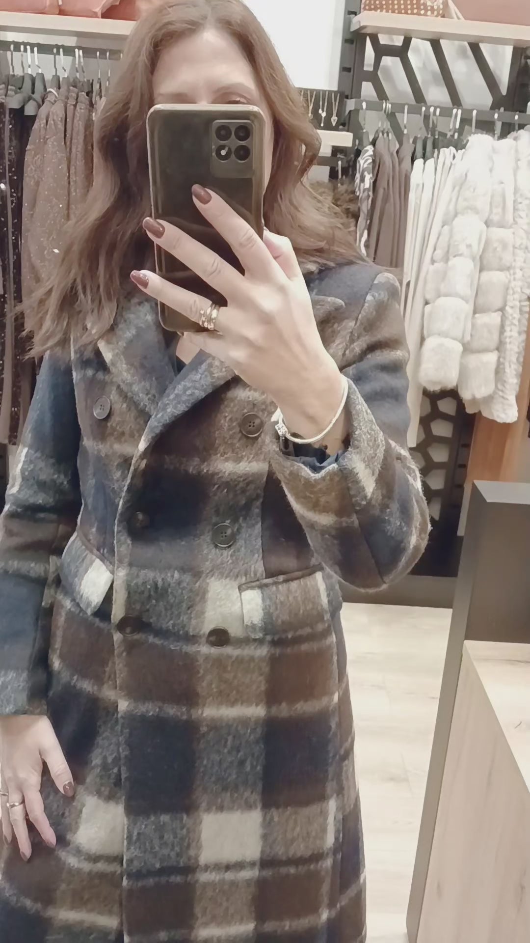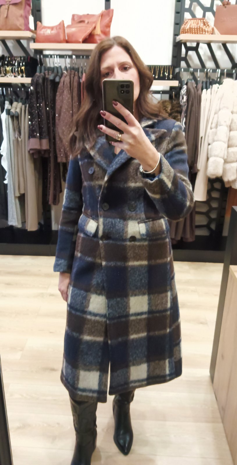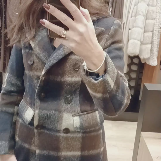 Μάλλινο πανωφόρι καρό σε αποχρώσεις του μπλε και του καφέ. Διαθέτει πέτο με γιακά.