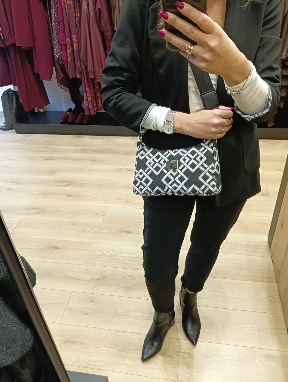 Τσάντα ώμου κατασκευασμένη από ύφασμα υφαντό και συνθετικό δέρμα άριστης ποιότητας. Διαθέτει ιμάντα και εσωτερική μικρή θήκη.