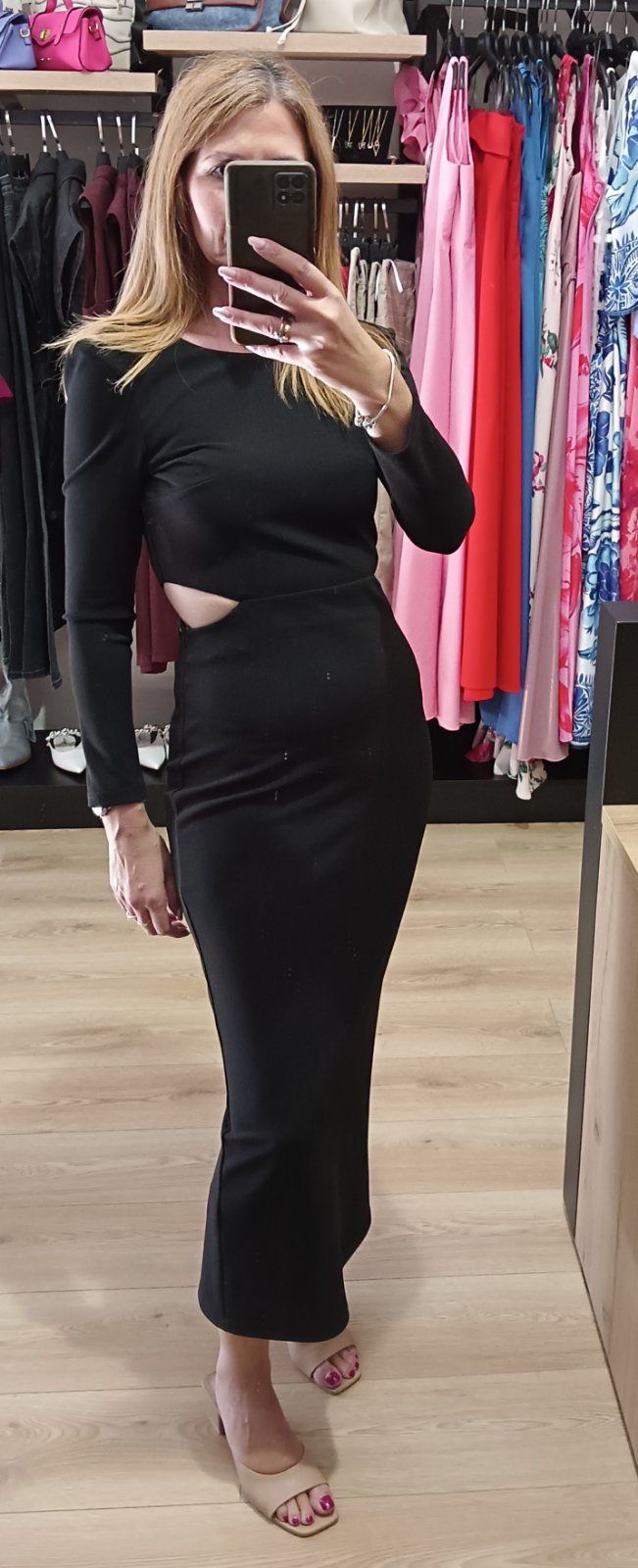 Κομψό μαύρο φόρεμα σε L-M-S εφαρμογή, σχεδιασμένο για να ταιριάζει άψογα σε κάθε σωματότυπο. Ιδανικό για cocktail parties, επίσημες εξόδους και βραδινές περιστάσεις, προσφέρει διαχρονική κομψότητα και άνεση.