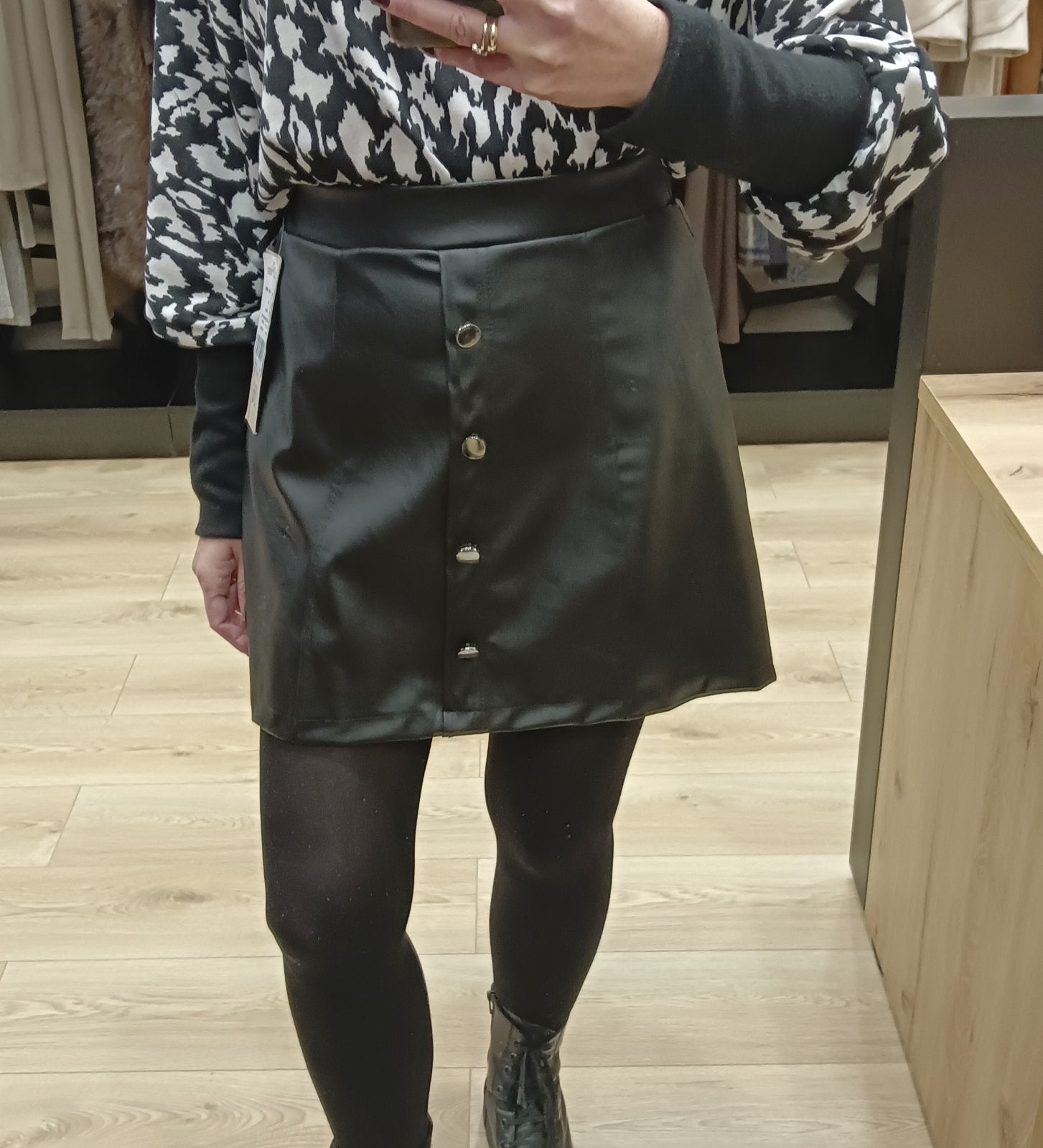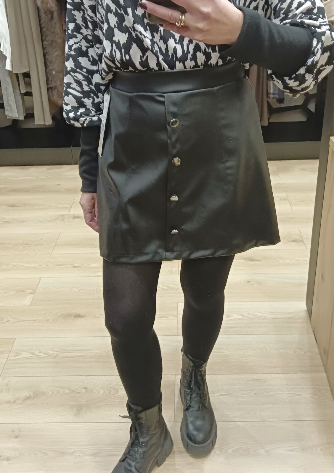 Φούστα από δερματίνη μίνι εβαζέ με διακοσμητικά κουμπιά.