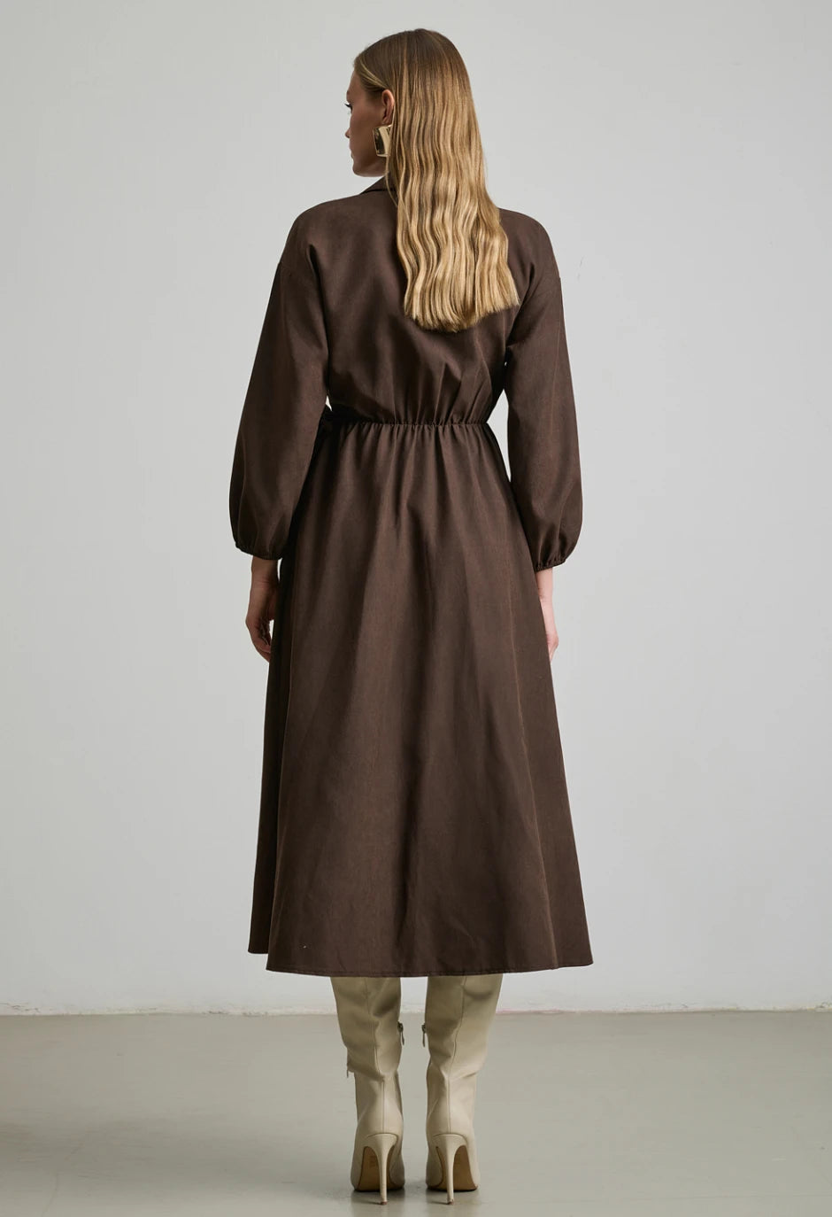 Φόρεμα Midi Κρουαζέ με Μακριά Μανίκια