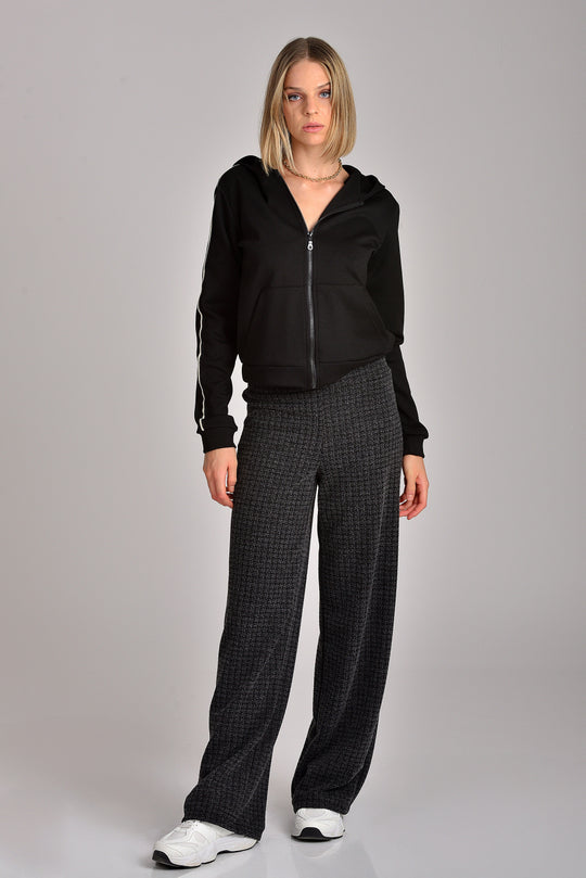 Αυτή η μαύρη ζακέτα από την paranoia συνδυάζει την άνεση του φούτερ με την κομψότητα ενός jacket/πανωφοριού. Κατασκευασμένη από soft φούτερ ύφασμα (95% polyester, 5% spandex), είναι η ιδανική επιλογή για το φθινόπωρο/χειμώνα, προσφέροντας ζεστασιά χωρίς να χάνει το στυλ. Η ελαστική της σύνθεση εξασφαλίζει άνετη εφαρμογή για όλη τη μέρα. Είναι ένα από τα must-have γυναικεία ρούχα στη βέροια για casual εμφανίσεις.